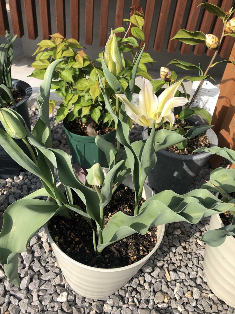 やっとチューリップ🌷咲いたー!濃い紫おしゃれ。あれ?白い花?(2枚目)ピンクのはず??よく見たらほんの少しピンクが付いてます。チューリップを育てるのが本当に下手です。2年育てて思ったことは水切れが大敵。我が家は日当たりも風通しもいいので乾くのが早いみたいです。