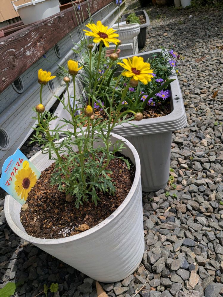 定植してみた。もう花が咲いているので、背丈は伸びないかなぁ~😅