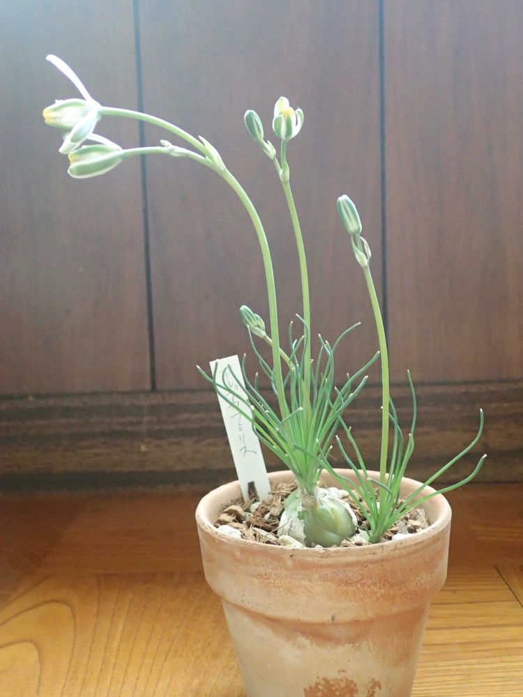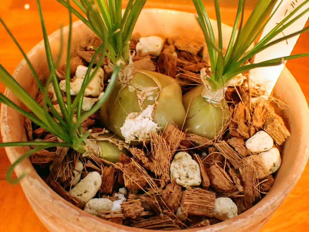 放射状に細長い葉を広げて、可愛い花を咲かせますが、球根がぷっくりとした姿を見せます😊