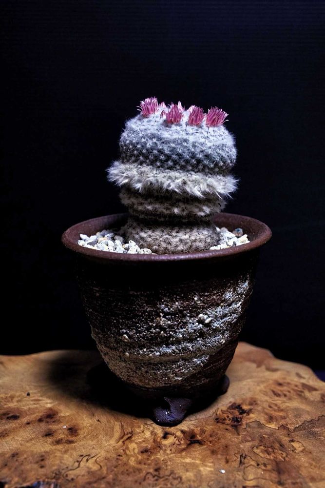 やっとね 自分の気に入った形になりました👍 へんてこな形がサボテンはおもしろいです 花はピンクのストライプがかわいいんですよー😊