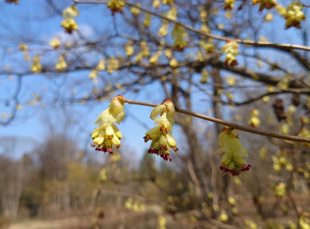 葉が展開する前に開花します