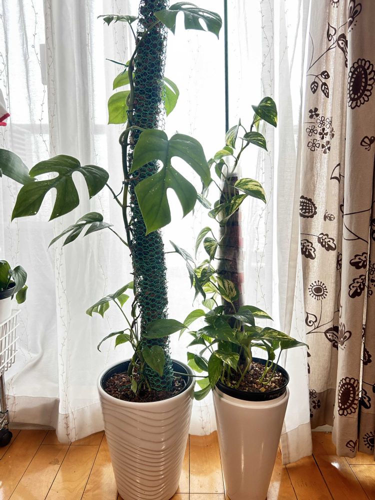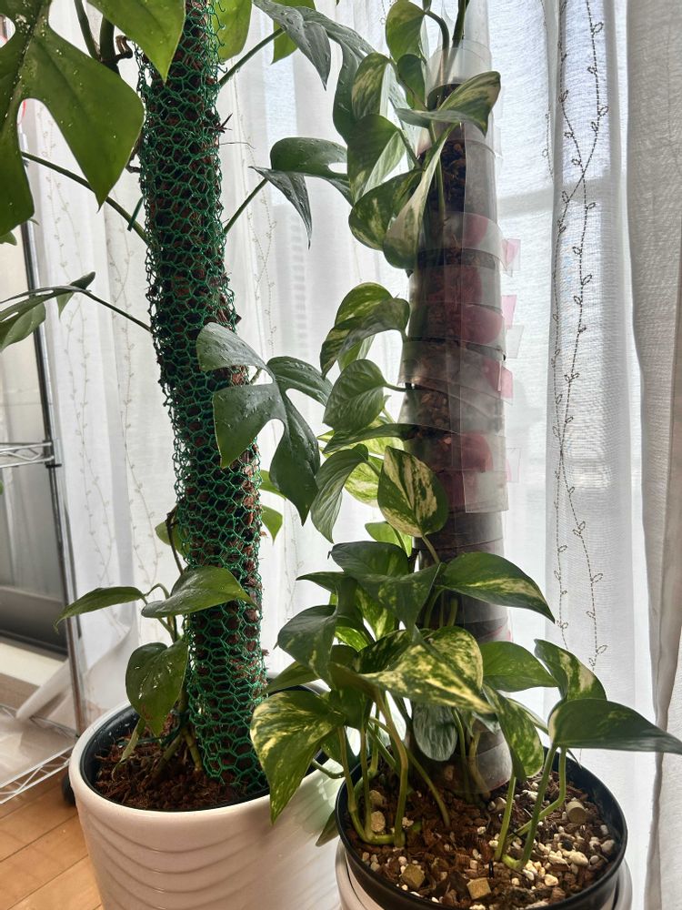 元々、隣のポトスのようなクリアファイルで作ったポールにしてたけど、成長してポールが長くなるにつれ周りにべラボンがボロボロ落ちまくるので掃除が大変😰