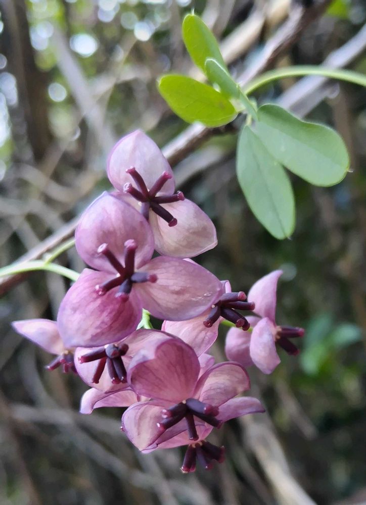 アケビのお花ってこんなに可愛いんだ、知らなかった、山形の主人の実家にありました。