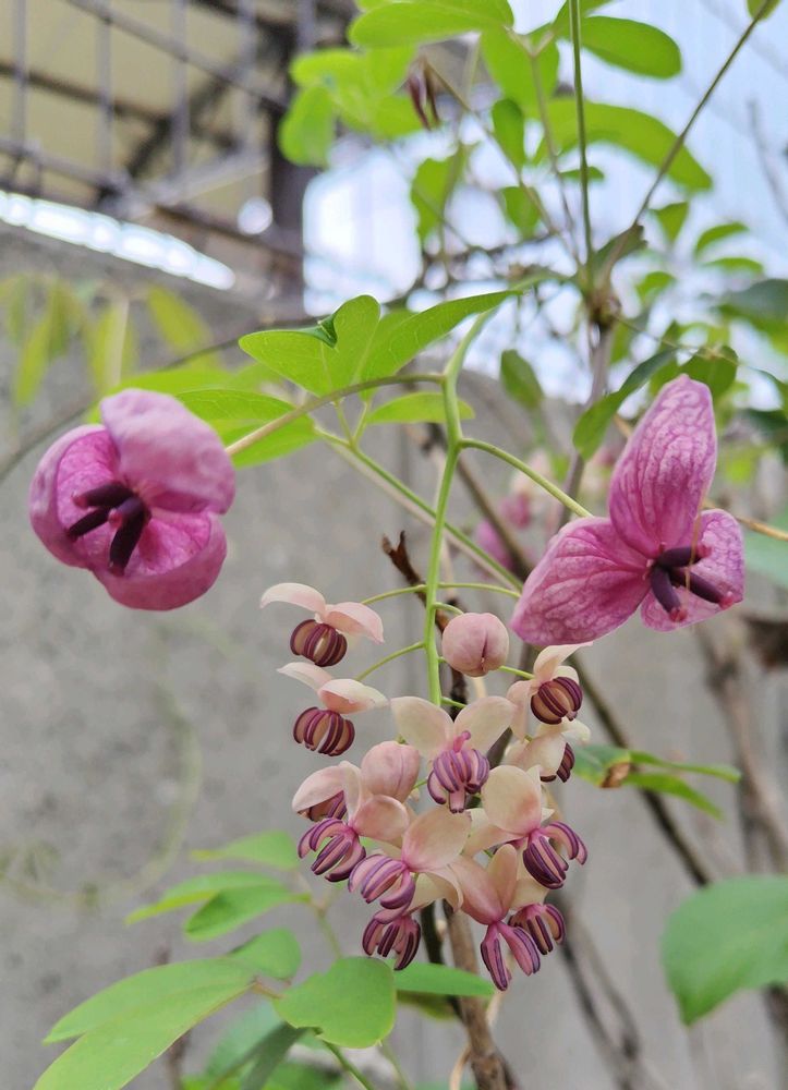 うたの近くのアケビは根元の方が木質化してきたけど、毎年雌花がひとつかふたつしか咲かないんだよ〜😂
