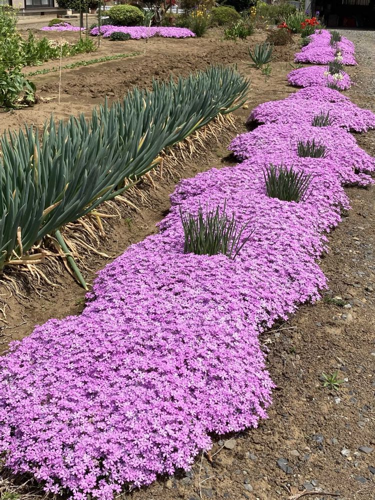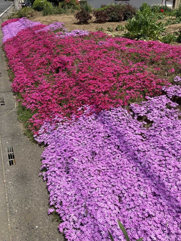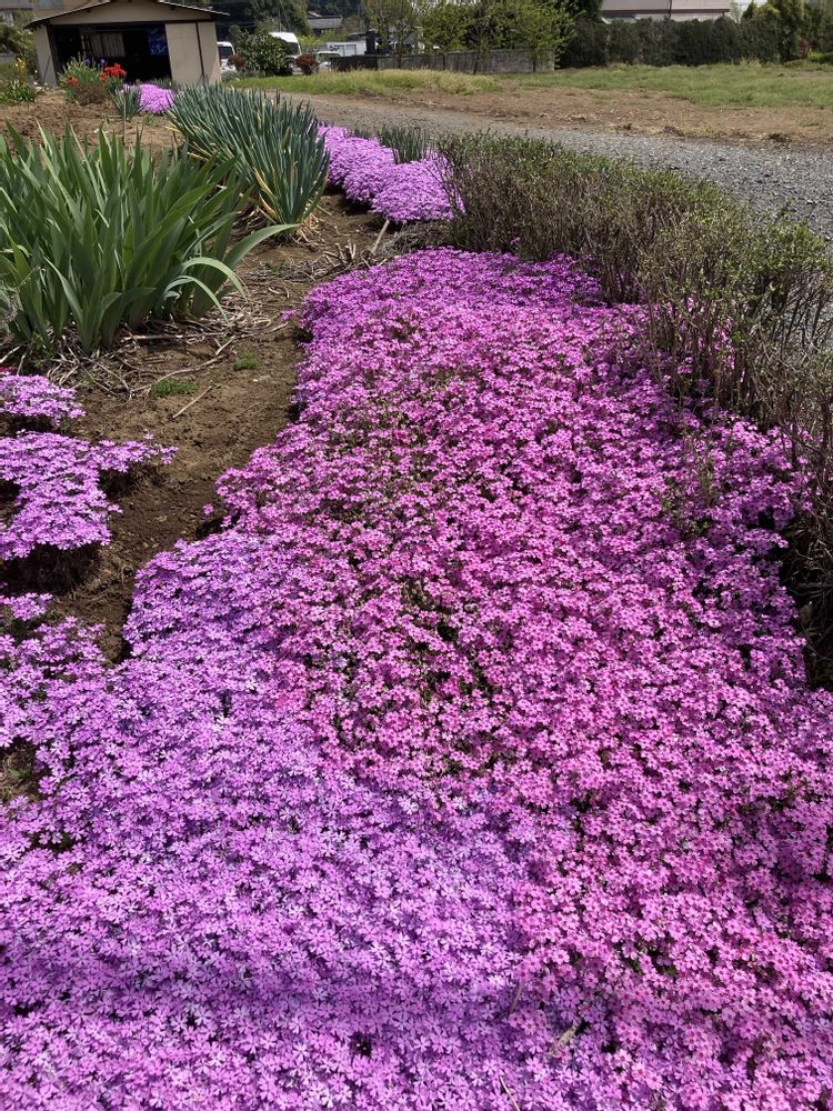 箭弓稲荷神社から帰る途中、畑脇に、とても綺麗に手入れされた美しいシバザクラの絨毯が🌸🌸🌸