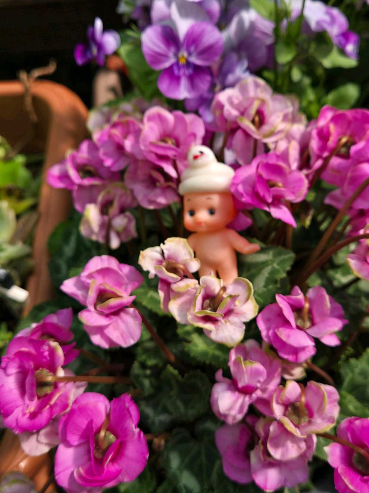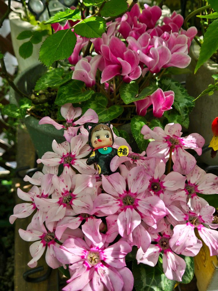 ピンクのお花の中でキュピちゃん達嬉しそう🥰💕