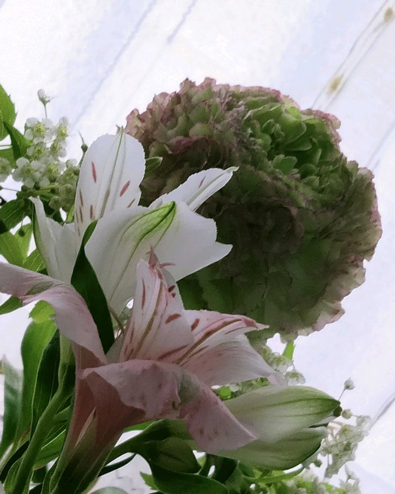 4枚目の手前のお花はアルストロメリアですか?白にグリーンが入っていて珍しいですね🤍💚💗綺麗です💓