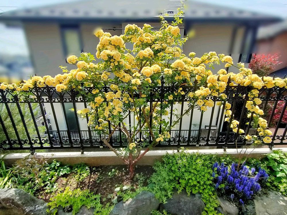 いざよいさんの黄モッコウバラ,木香薔薇,バラ フェンスの投稿画像