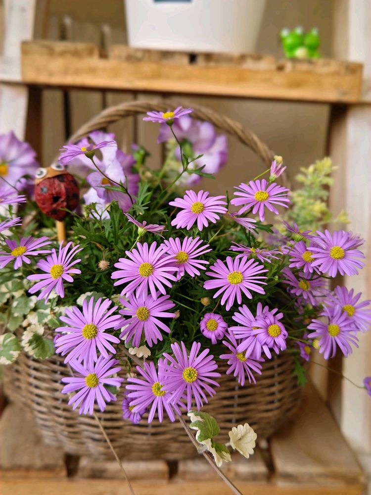 我が家の花手水とブラキカムの花籠🧺で、お祝い。