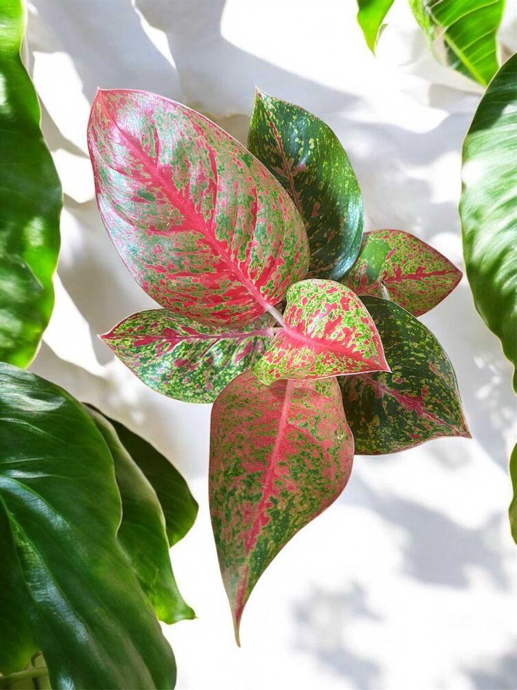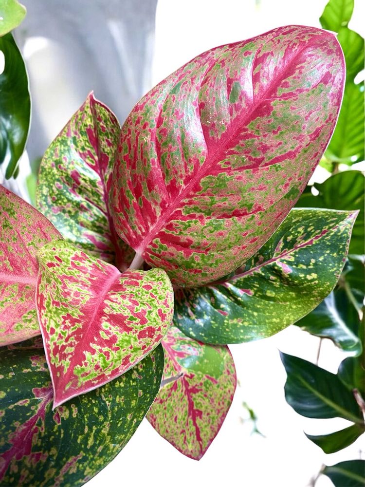 濃い緑色の葉っぱに赤やピンクの斑模様が入るアグラオネマ•ファイヤーワークス💚❤️🩷