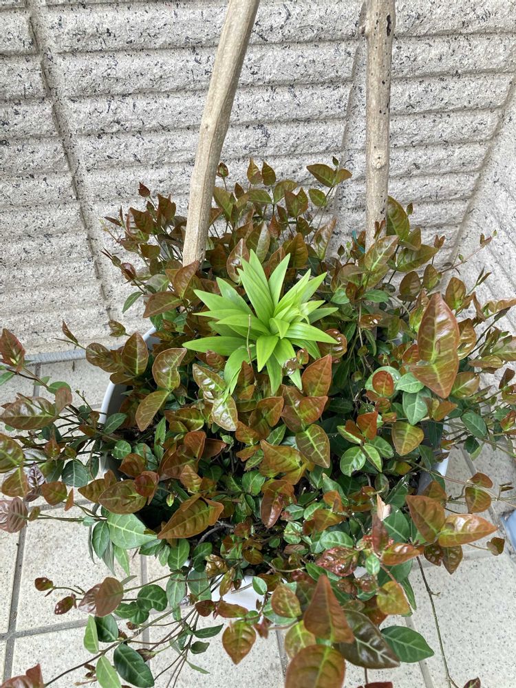 ハツユキカズラはそのまま残して真ん中にカサブランカの球根を入れてみました😆