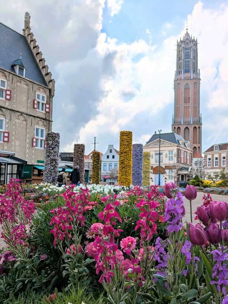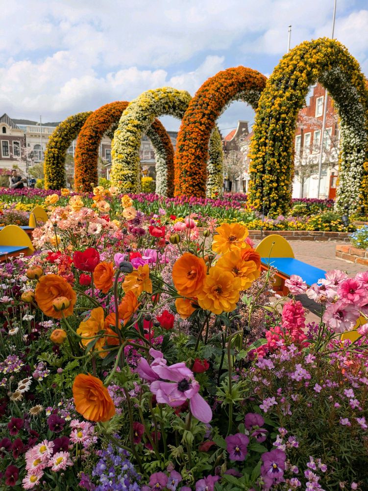 ①〜③アムステルダム広場スタッドハウス花壇。色とりどりのお花達が風に揺れて心が躍りました💕