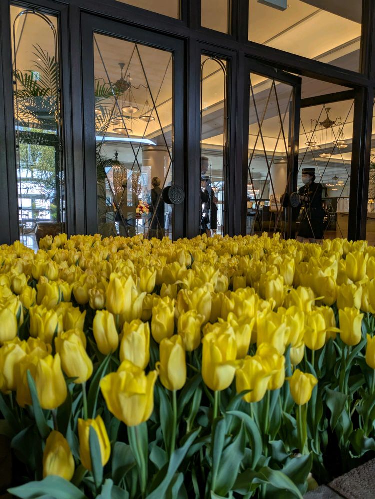 ⑤最後はホテルヨーロッパの正面玄関の両サイドに咲く黄色のチューリップ💛圧巻でした‼️