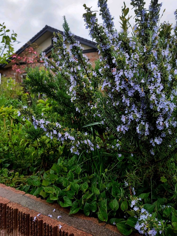 ローズマリーが冬からずっと咲いてます。カラスノエンドウが入り込んでましたが全部ブチブチ取ってすっきりしました。ドクダミは高く伸び上がってこない限り基本放置です。土の保湿をしてくれて、地温が上がりすぎるのを防いでくれて、冬には全て枯れるので個人的にツユクサほど厄介者ではないと思ってます。