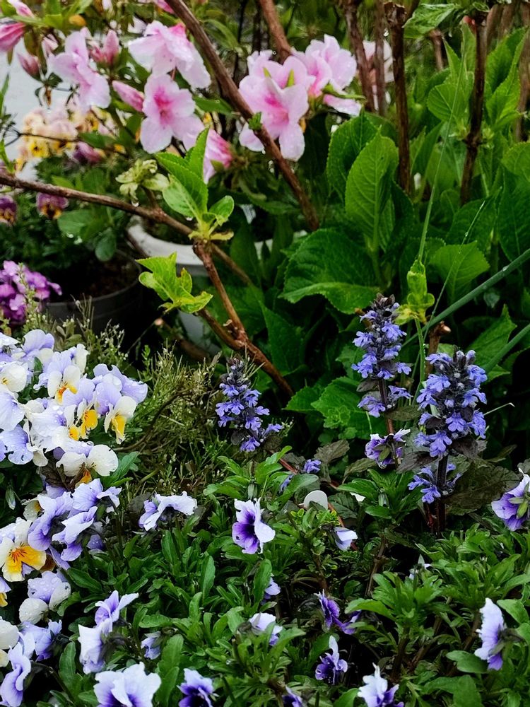 寄せ植えのスペース埋めで植えておいたアジュガが、ググッと立ち上がって咲いてきました。株元見たらそんなに出す?ってくらいランナーを出しているので、ビオラが終わってもそのまま鉢で増やすのもいいかもですね。