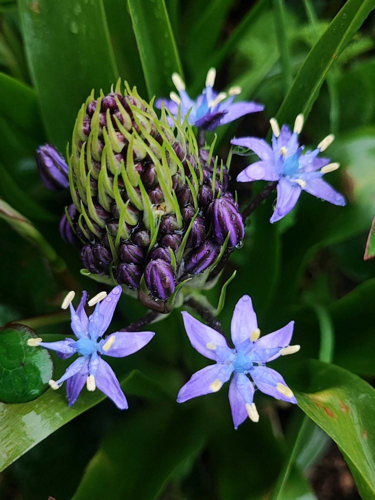 植えてから数年咲かなかったシラー ペルビアナ(オオツルボ)も初開花です。キモ可愛い。