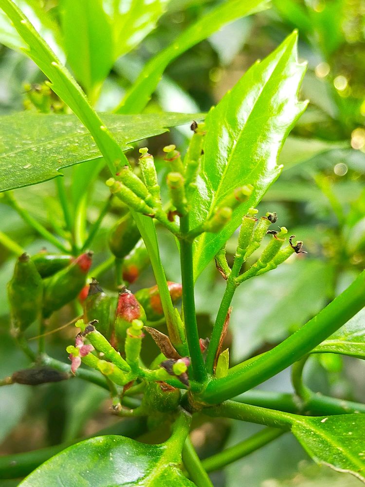 実を付けた株で花を探すと柱頭があって花粉(雄しべ)がないのが雌花