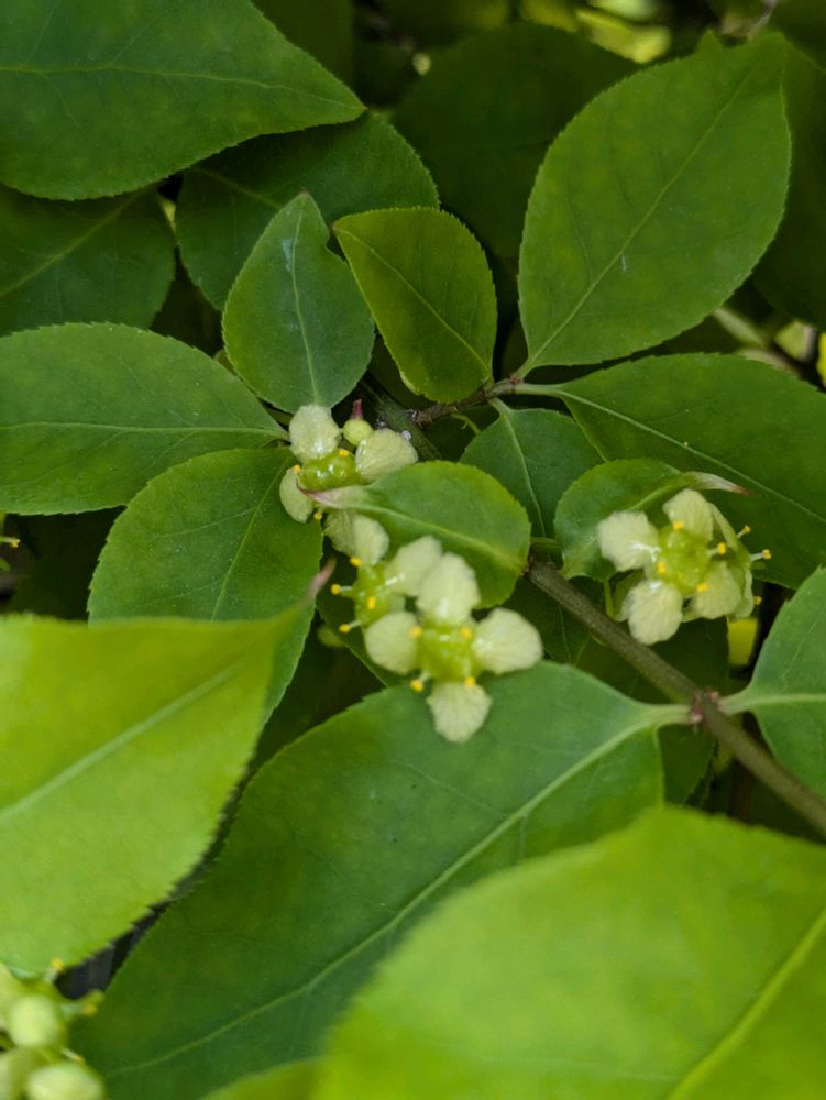 ①ニシキギ ニシキギ科 葉が青々として来てビックリしました。