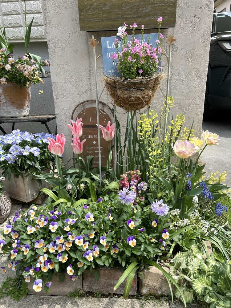 小さな小さな花壇にいつも色々詰め込んでしまっています🌸🌼🌷🪻
