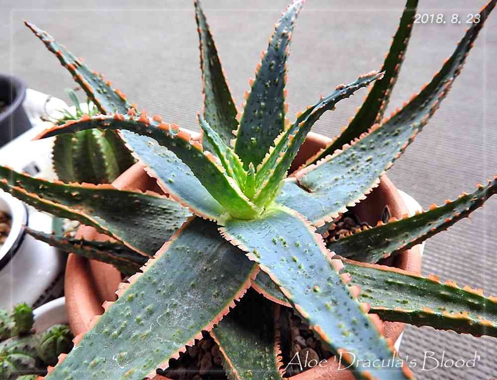 最近まで水をかなり減らしていたので、葉が二つ折り状態になってかっこよさアップだったドラキュラズブラッド。水をやったら速やかに葉っぱ全開。……こうなるとドラキュラズブラッド感が減るんだよなあ……こいつ。むしろレッドドラゴンに似てる。