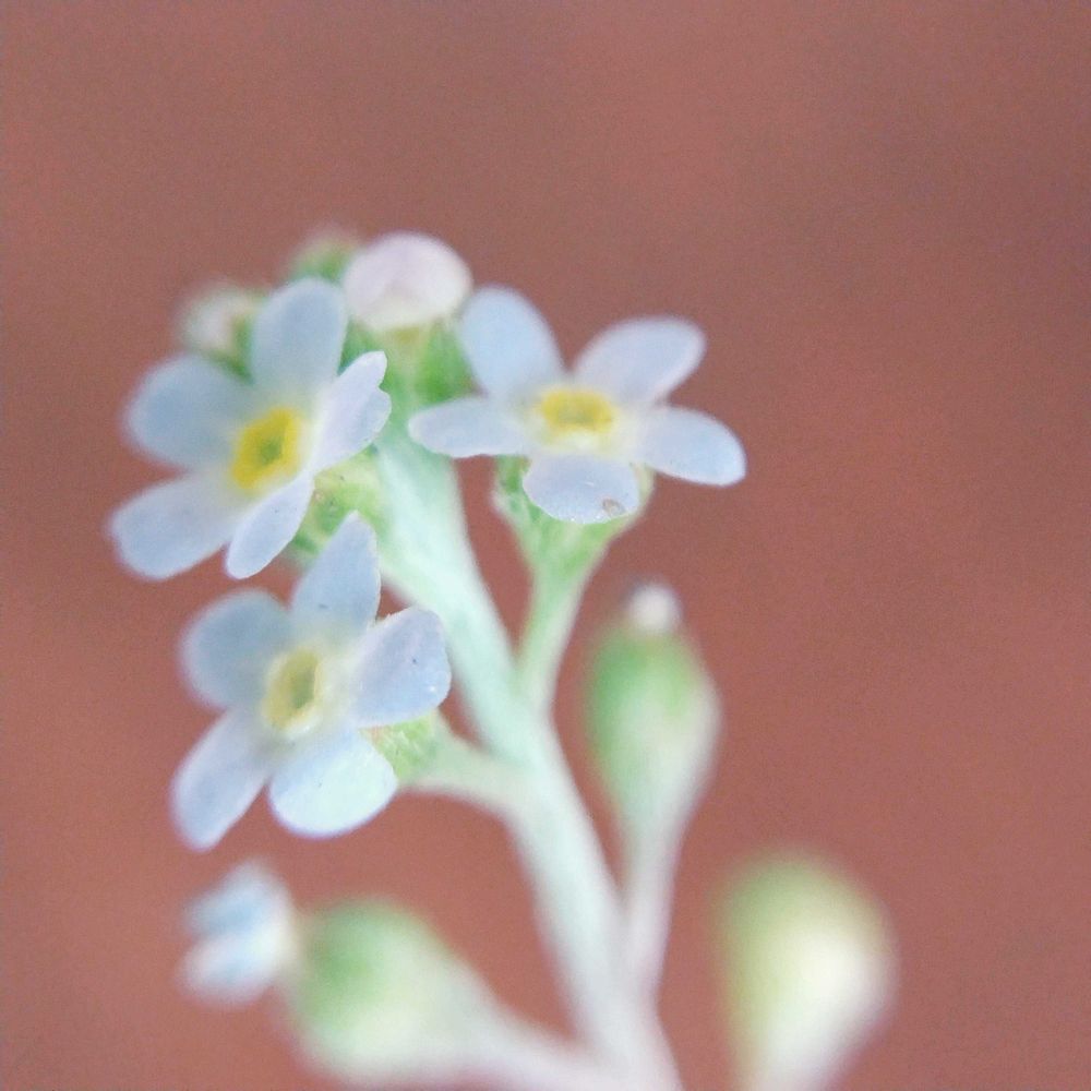 葉っぱが胡瓜の匂いがするそうですが、よくわかりません。薄青い花で、とっても小さいです(3mmほど)