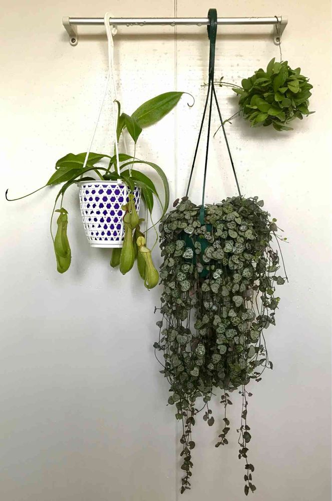 カーティシーに見えるのはウツボカズラかと思いますが、西陽のあたるキッチンに吊り下げているだけで特別コツはないです。お役にたてずすみません💦