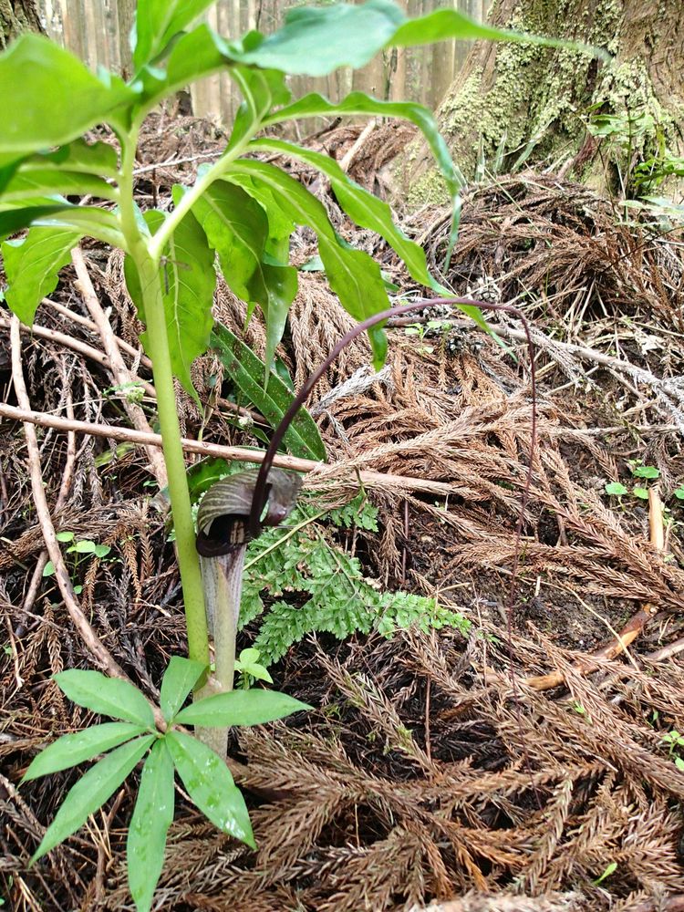 ウラシマソウとマムシグサ。里山ではテンナンショウ属の毒草が最盛期です。🍄