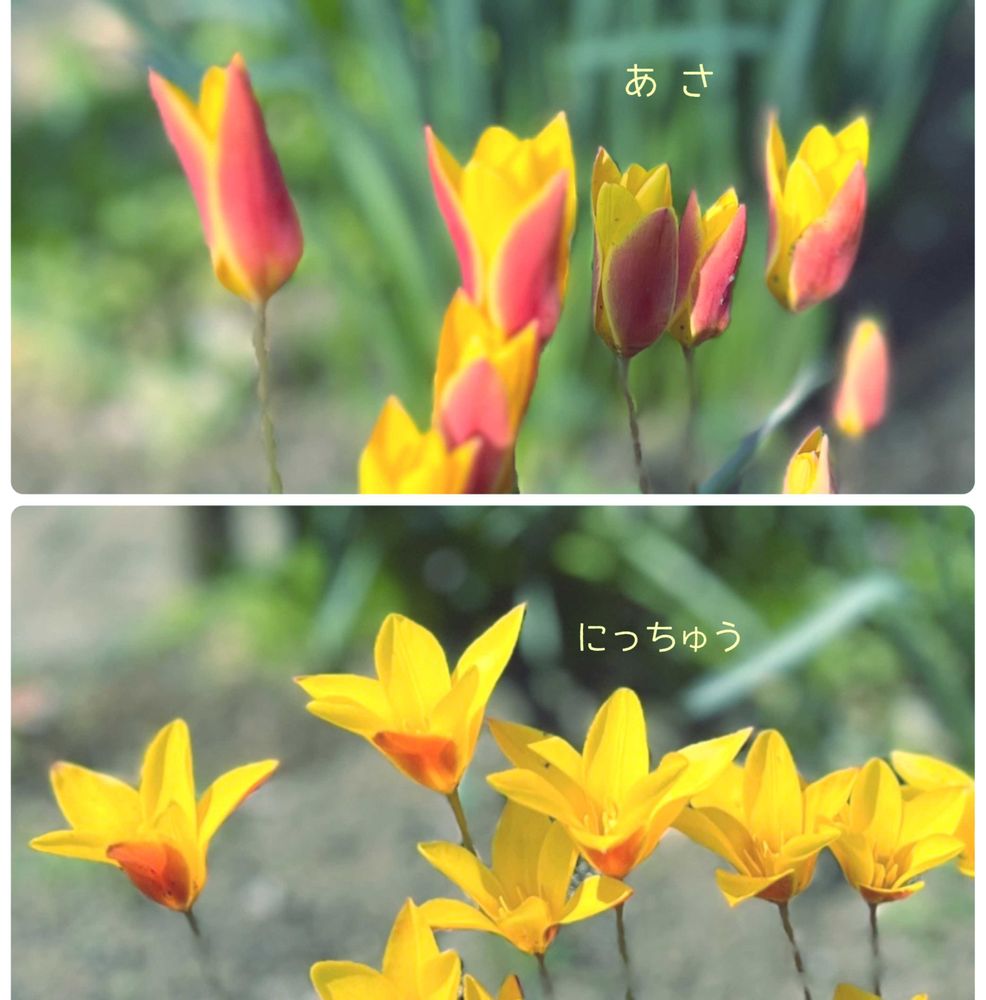 ⑤赤と黄色の原種チューリップ💛❤️