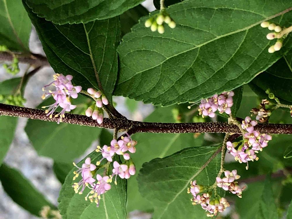 いつもそこまで観察はしてないですよ。(笑)ムラサキシキブに似てる木をいただき、2年ぐらいは花もさかなかったので、これいったい何?と、葉っぱを匂ったりしてました。なんかレモンの香りがしたんです。花が咲いて、ムラサキシキブに似てるかなあ〜と思った次第です。