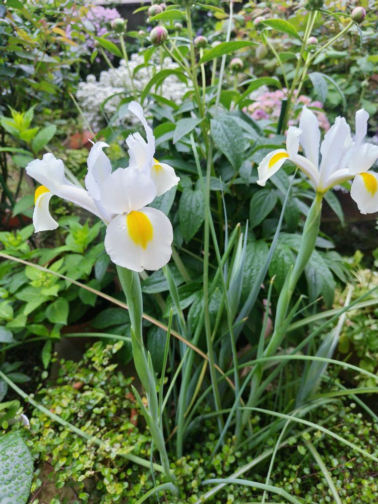 ①庭を覗くとアイリスが開花してました! 昨日はまだまだそんな気配なかったのにビックリ。
