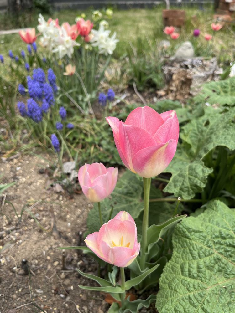 ここ2日の暖かさというか、暑さ(30度まで上がりました💦)でチューリップが満開に。
