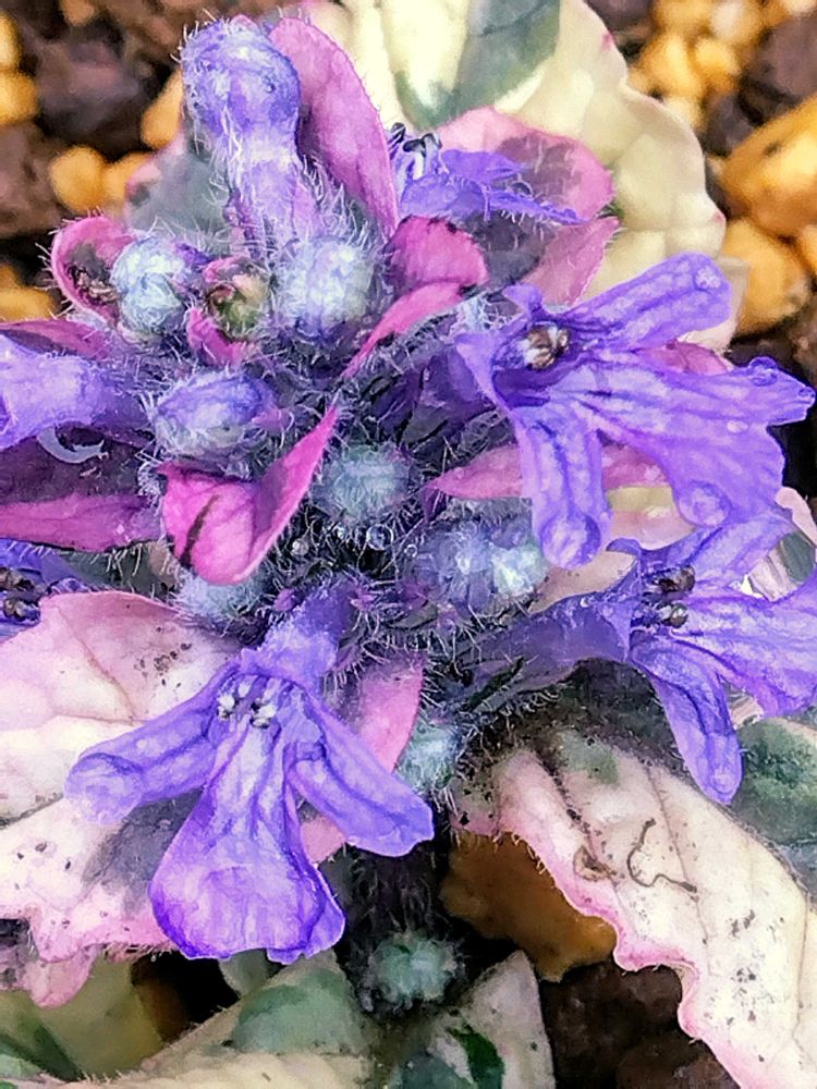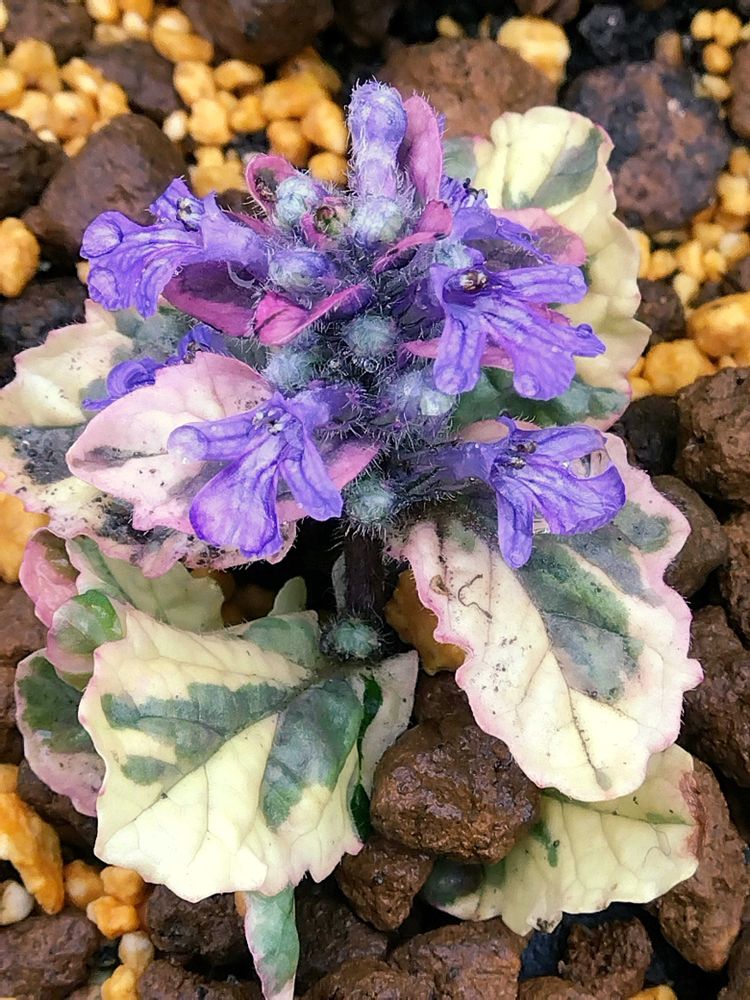斑入りアジュガ咲きましたね❣️斑入り種は普通種より繁殖力が弱いように私も感じます😅