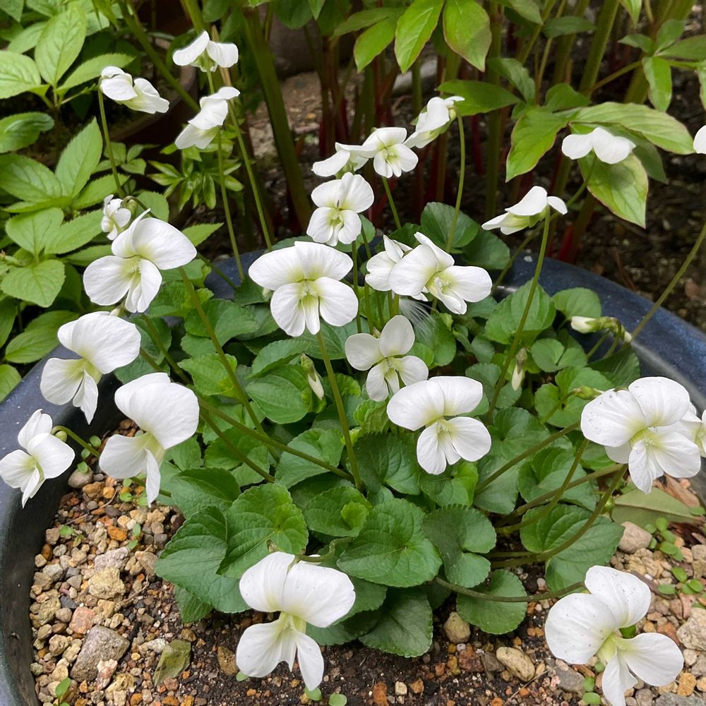 真っ白いタチツボスミレ、お庭にさいているのですか。