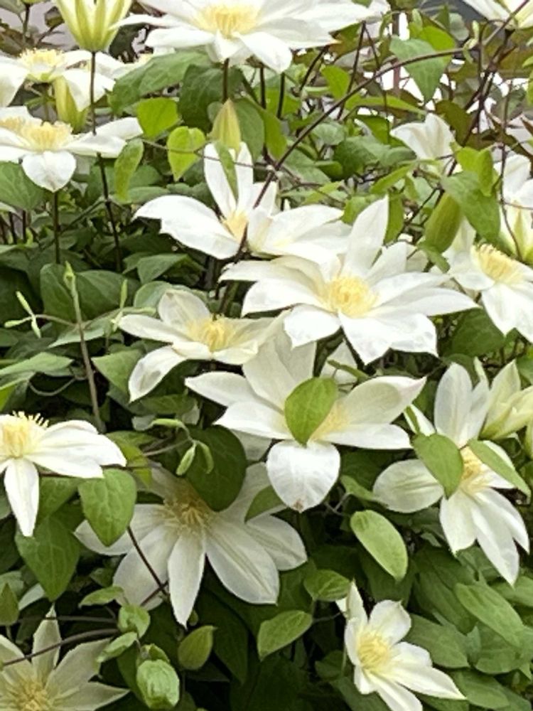 ドウダンツツジに🌱からまって咲いているテツセンの花🤍