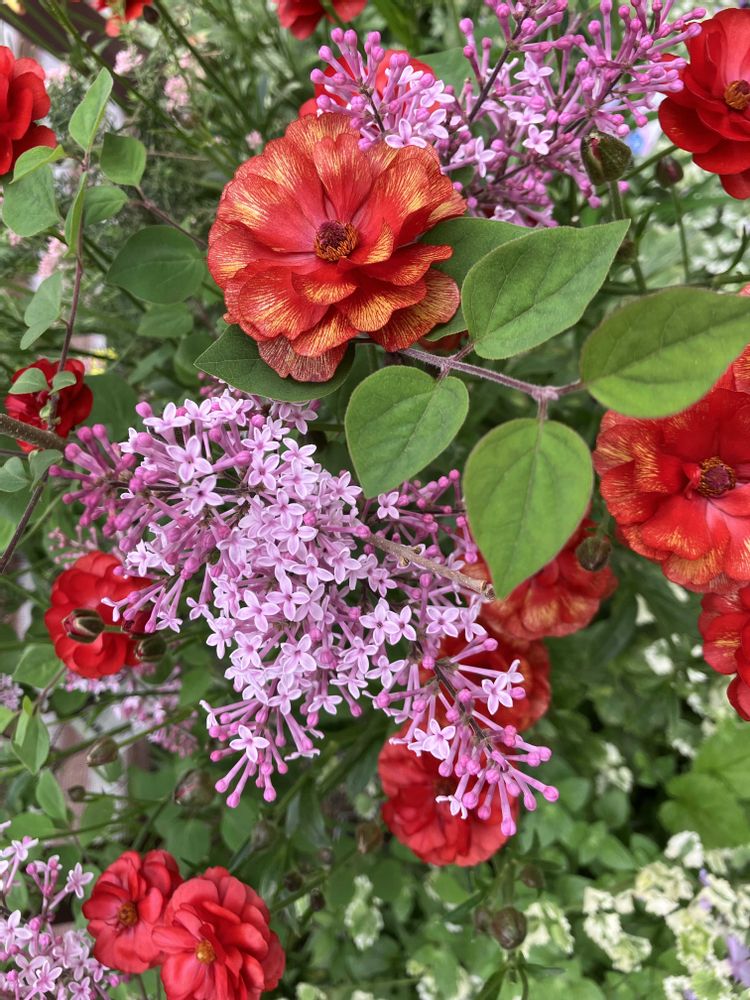 ライラックの側のラックスは白が良いかなと思ったのですが品種がわからなくなって赤でした🤭