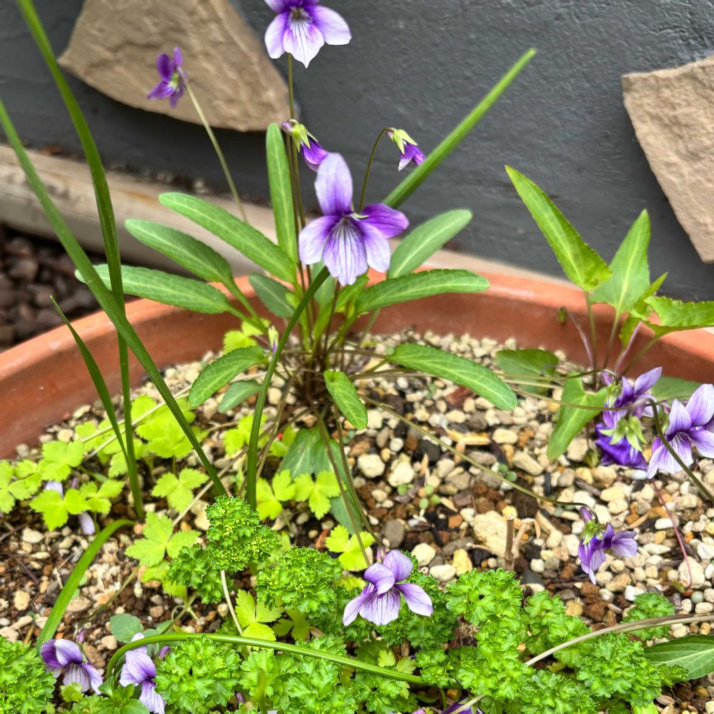 大きくて華やかなお花より、離れてひっそり咲いているイメージのすみれちゃん達。こういうお花を見つけるにつれ、応援したくなるんです。