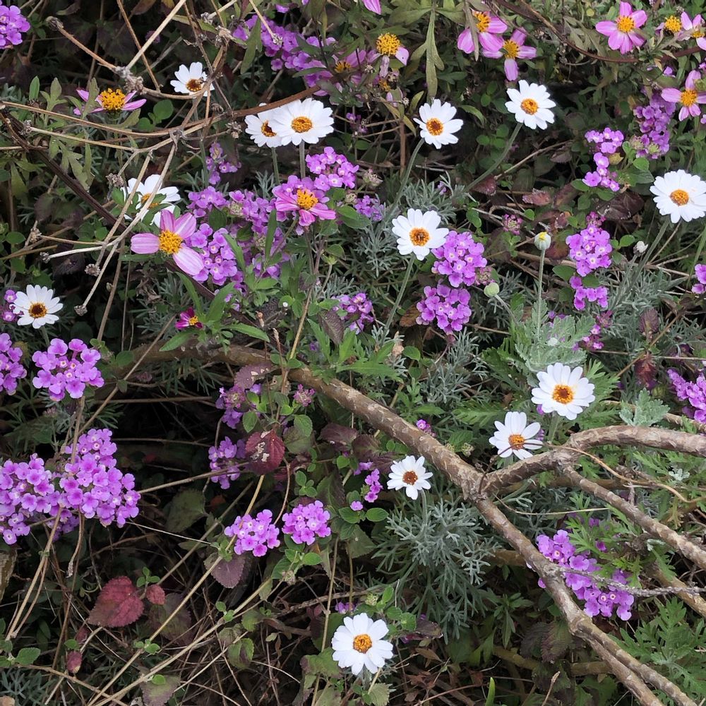 昨日の写真じゃ全然良さが伝わらなかったのでもう少しアップで。コバノランタナと仲間たち。