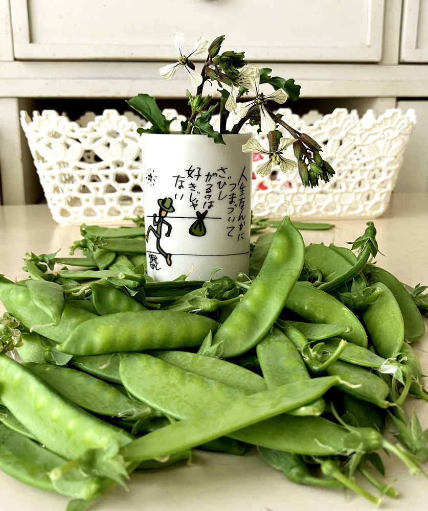 お昼はサヤエンドウ🫛で春野菜のぺぺロンチーノを作ることにしました