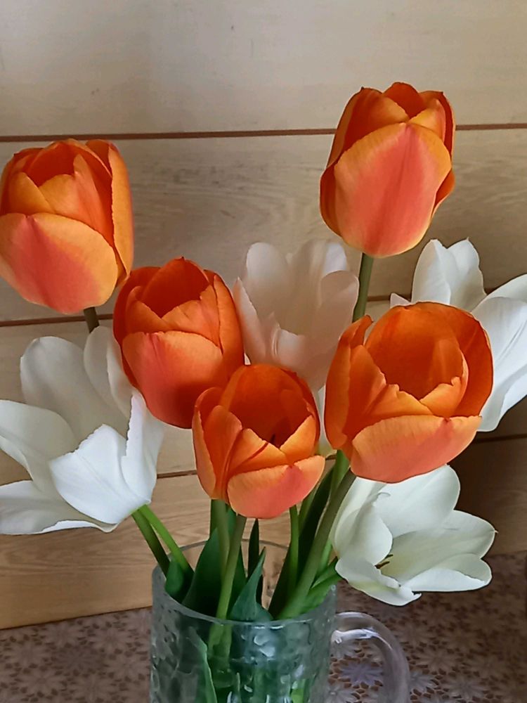 混色の中から咲き始めた、燃えるような色のチューリップ🤭