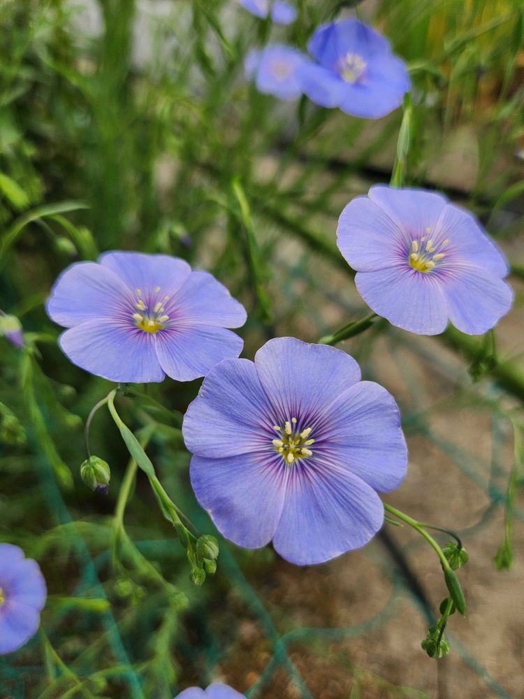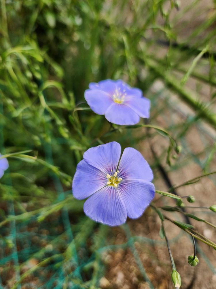 昨年は咲かなかった、亜麻の花が咲きました。