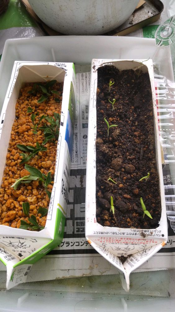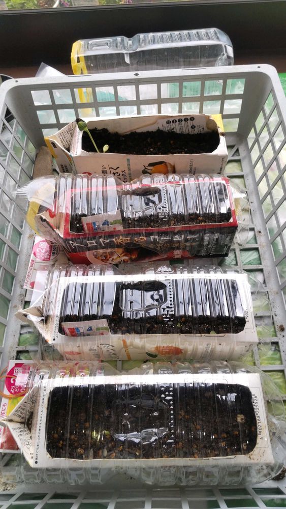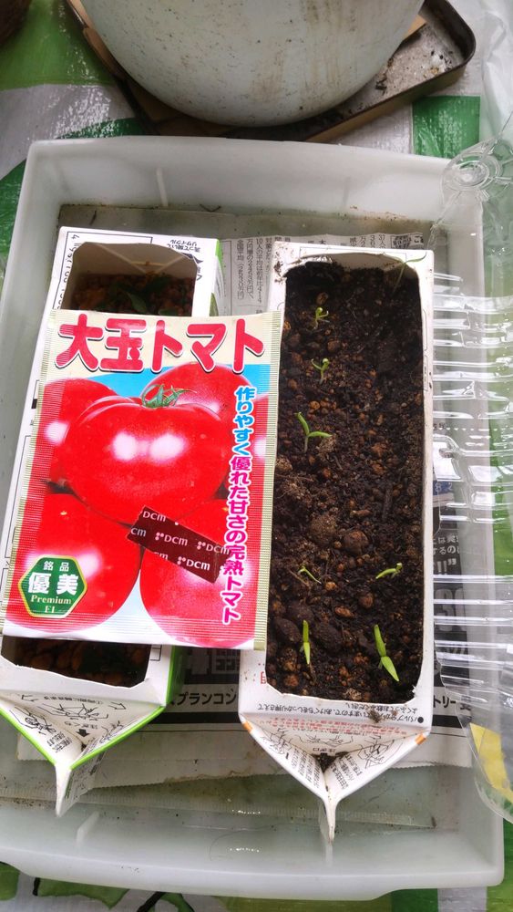 紙パックの種子撒きっ子 大玉トマトにも挑戦です。😃🙋