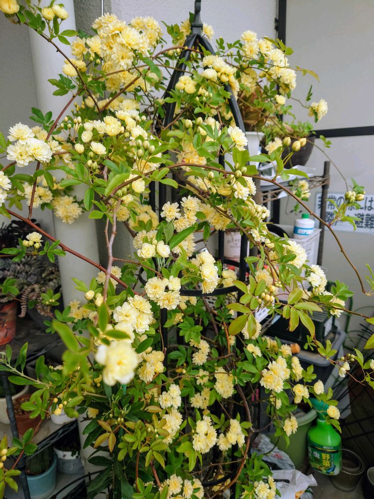 ベランダの鉢植えモッコウバラが一気に開花💓