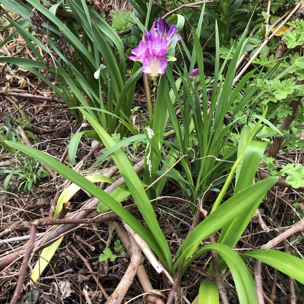 2枚目:剣型の葉3種。スイセンは花はとうに終わって、あとは地上部が枯れるのを待つだけ。アガパンサスはゆっくり増えつつある。数年前に球根?2つ移植したうち南寄りの株は毎年花を咲かすようになったが、写真の北寄りのは日当たりの関係で成長が遅くまだ花を咲かしてない。日当たり阻害してたセンテッドゼラニウムをかなり除去した今年あたりそろそろ咲かんかな。フリージアは花は好きだが葉がイネ科雑草チガヤに似てて、見るたびに抜きたい衝動に駆られる。他にも剣型の葉をつける植物の球根を園芸店で見かけるが、チガヤと紛らわしそうな奴は却下。
