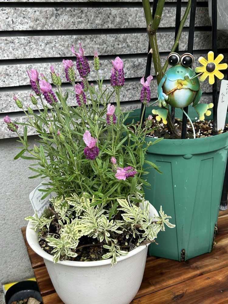 ラベンダー・メルローさんがダラダラ伸びて奥に隙間もあったので思い切って剪定して奥にフレンチラベンダー🪻を寄せ植えしてみました。