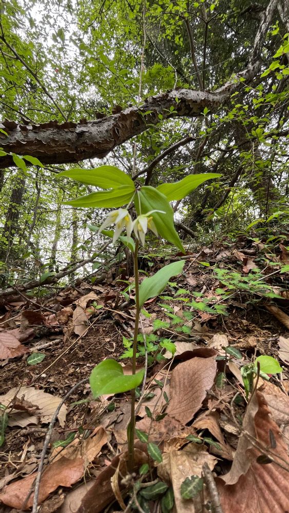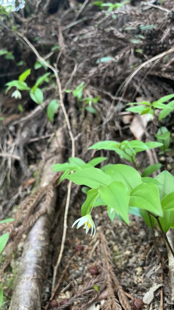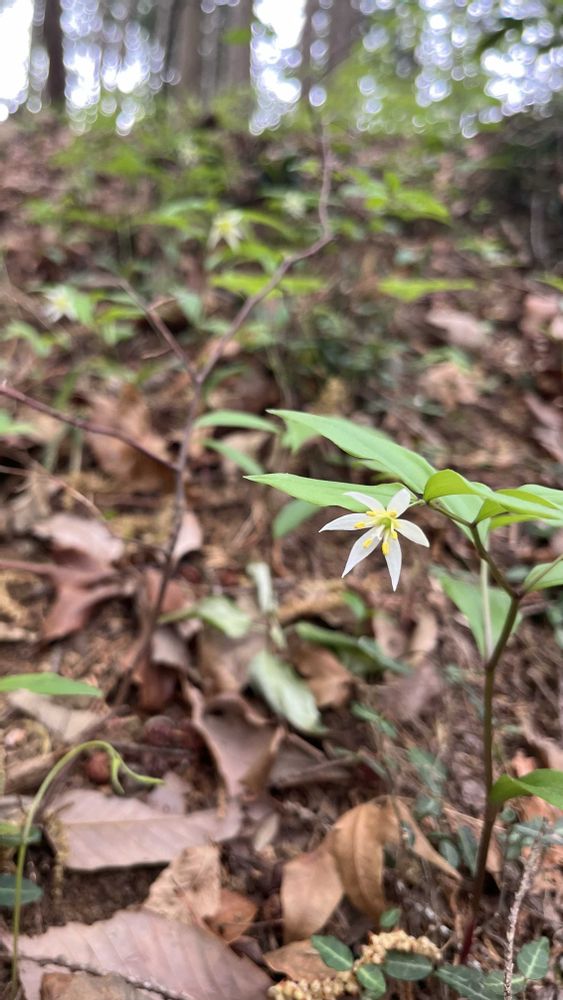 草戸山の山道で、足元には沢山のチゴユリが咲いていました。俯いているので、なかなかお花が撮りにくいのですが、斜面で下から覗き込むと可愛いお顔が😍。