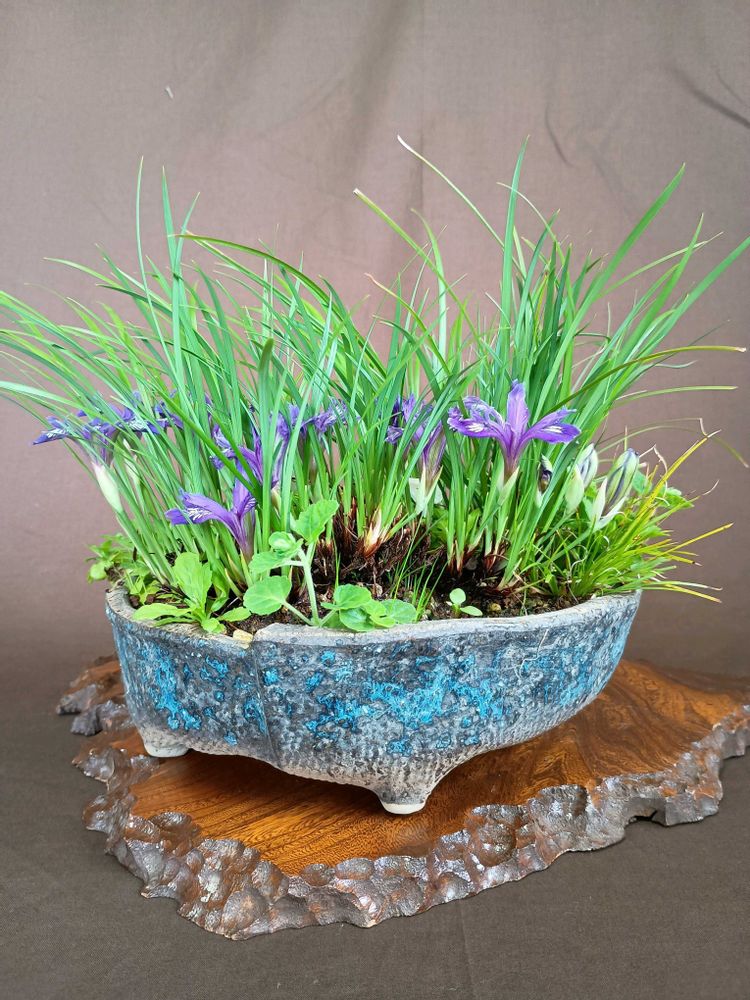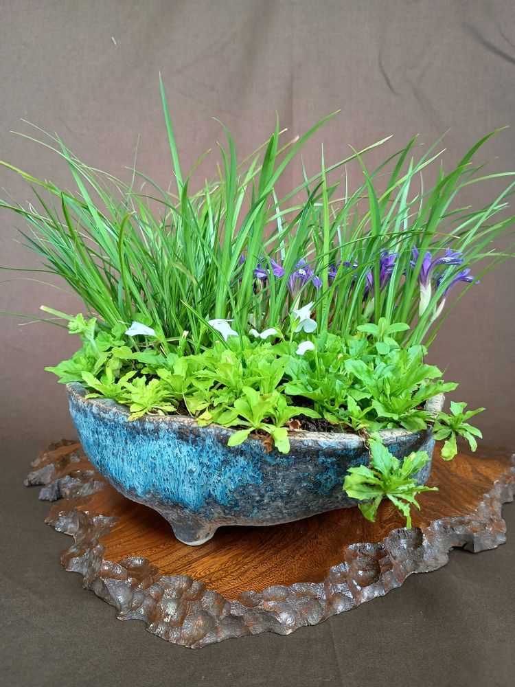 チベットアヤメが恥ずかしそうに隠れて咲いています🌿💙🌿サギゴケも