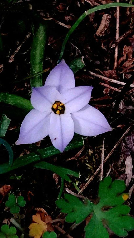 庭の定例の群生場所に今年もハナニラの花が咲き始めました。