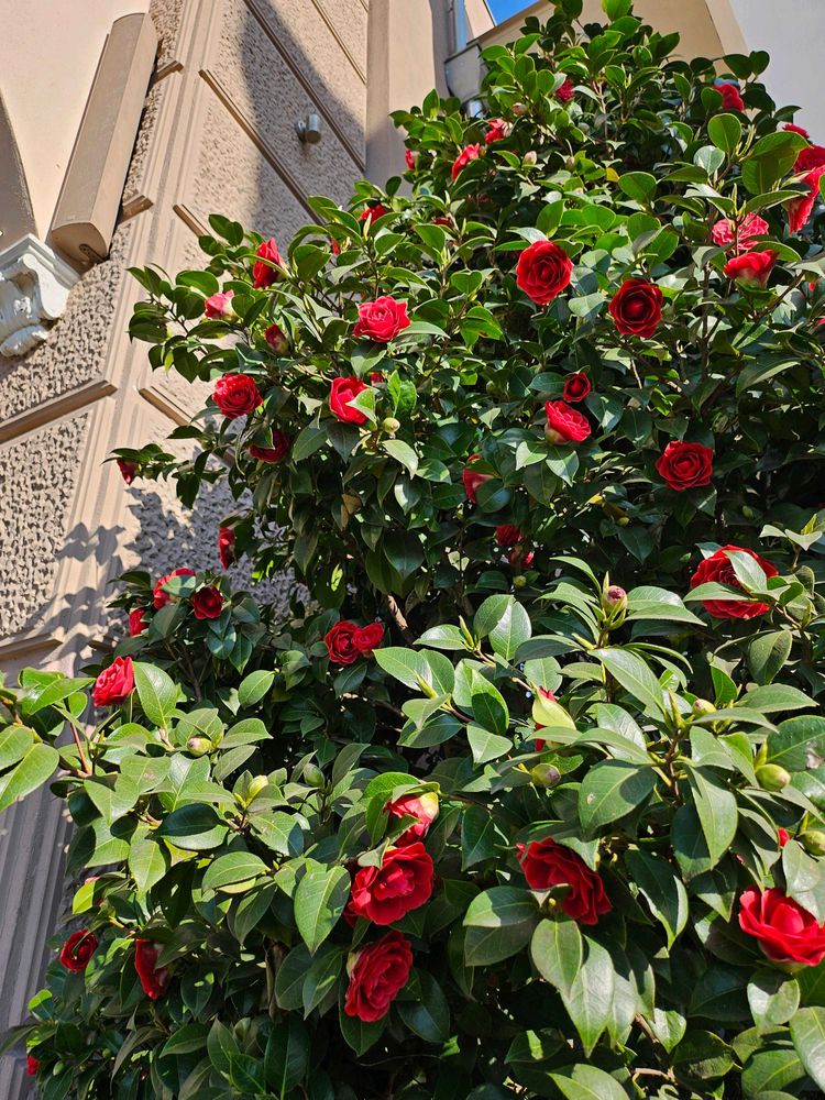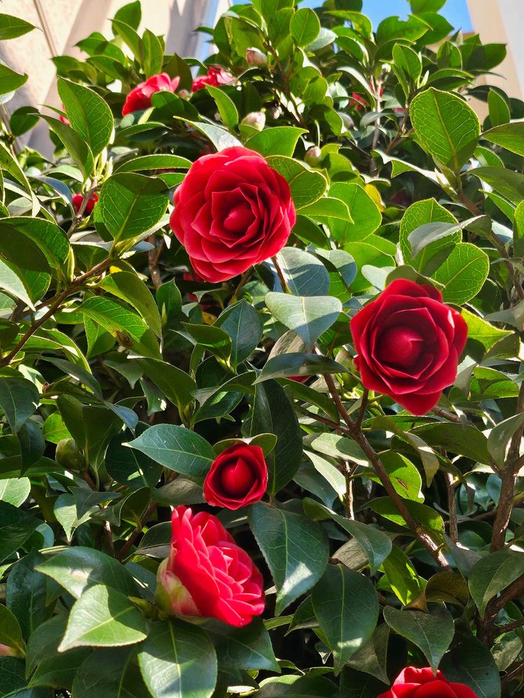 鮮やかなバラ🌹の様な椿さん、まだ,咲いて、満開で綺麗ですね。我が家は,みんな,下にペタペタと,絨毯になりました。