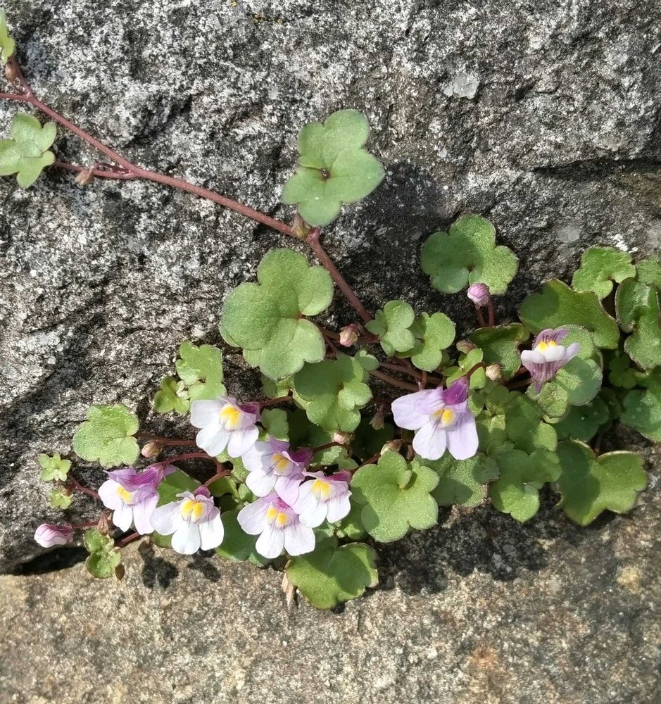 石垣と歩道の隙間に生えていたツタバウンラン。