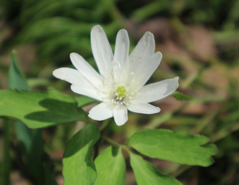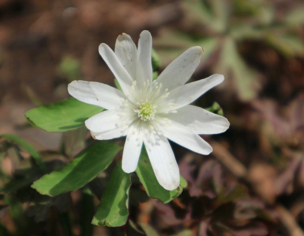 公園までウォーキングしたら、春を待っていたかのように咲いたアズマイチゲを見かけました。